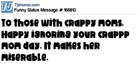 X says To those with crappy moms, Happy ignoring your crappp mom day. It makes her miserable.
