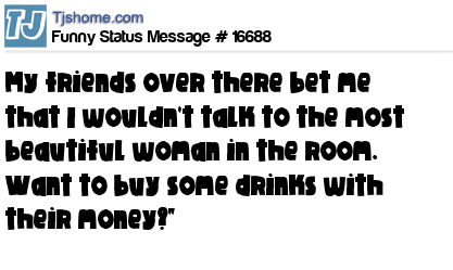 X is My friends over there bet me that I wouldn't talk to the most beautiful woman in the room. Want to buy some drinks with their money?"