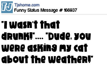 X says "I wasn't that drunk!".... "Dude, you were asking my cat about the weather!"
