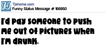 X says I'd pay someone to push me out of pictures when I'm drunk.