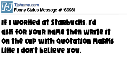 X says If I worked at Starbucks, I'd ask for your name then write it on the cup with quotation marks like I don't believe you.