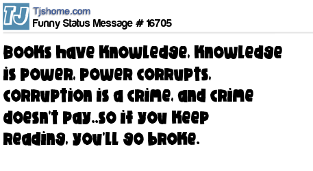X says Books have knowledge, knowledge is power, power corrupts, corruption is a crime, and crime doesn't pay..so if you keep reading, you'll go broke.