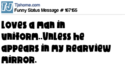 - # 27331 loves a man in uniform, unless he's in my rearview mirror.