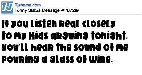 X says If you listen real closely to my kids arguing tonight, you'll hear the sound of me pouring a glass of wine.