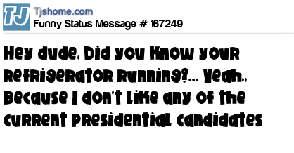 X says Hey dude, Did you know your refrigerator running?... Yeah,, Because I don't like any of the current presidential candidates
