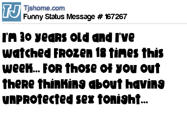 X says I'm 30 years old and I've watched Frozen 18 times this week... For those of you out there thinking about having unprotected sex tonight...