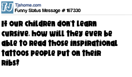 X says If our children don't learn cursive, how will they ever be able to read those inspirational tattoos people put on their ribs?
