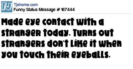 X says Made eye contact with a stranger today. Turns out strangers don't like it when you touch their eyeballs.