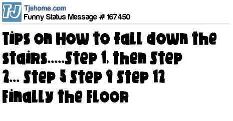 X Tips on How to fall down the stairs.....Step 1, then Step 2... Step 5 Step 9 Step 12 Finally the Floor
