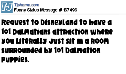 X says Request to Disneyland to have a 101 Dalmatians attraction where you literally just sit in a room surrounded by 101 Dalmation puppies.