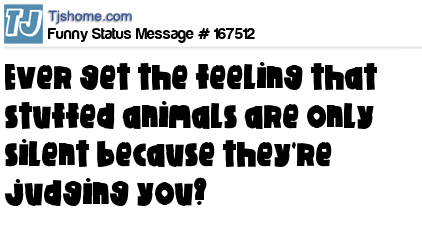 X says Ever get the feeling that stuffed animals are only silent because they're judging you?