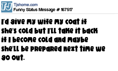 X says I'd give my wife my coat if she's cold but I'll take it back if I become cold and maybe she'll be prepared next time we go out.