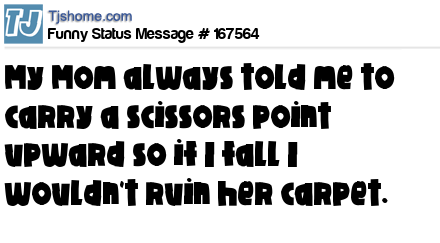 X says My Mom always told me to carry a scissors point upward so if I fall I wouldn't ruin her carpet.