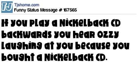 - # 202951 If you play a Nickelback CD backwards you hear Ozzy laughing his arse off because you bought a Nickelback CD.