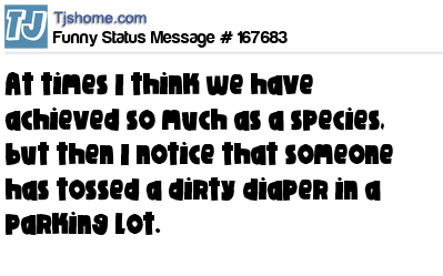 X says At times I think we have achieved so much as a species, but then I notice that someone has tossed a dirty diaper in a parking lot.