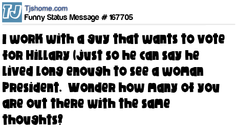 X says I work with a guy that wants to vote for Hillary (just so he can say he lived long enough to see a woman President. Wonder how many of you are out there with the same thoughts?