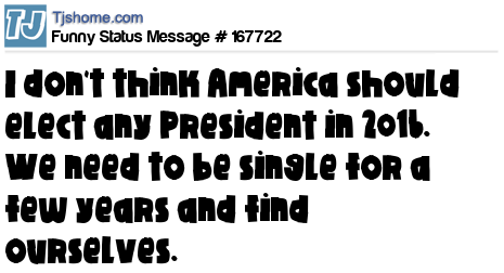 X says I don't think America should elect any President in 2016. We need to be single for a few years and find ourselves.