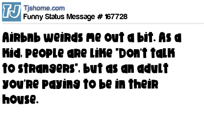 X says Airbnb weirds me out a bit. As a kid, people are like "Don't talk to strangers", but as an adult you're paying to be in their house.