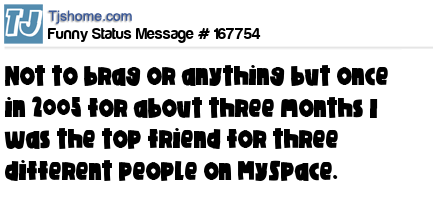 X says Not to brag or anything but once in 2005 for about three months I was the top friend for three different people on MySpace.