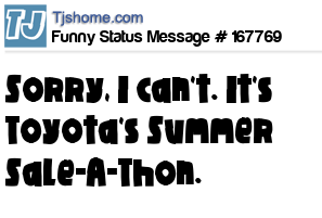 X says Sorry, I can't. It's Toyota's Summer Sale-A-Thon.