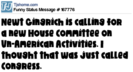 X says Newt Gingrich is calling for a new House Committee on Un-American Activities. I thought that was just called Congress.