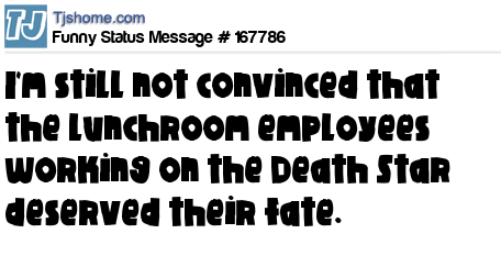 X says I'm still not convinced that the lunchroom employees working on the Death Star deserved their fate.