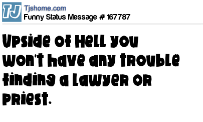 X says Upside of Hell you won't have any trouble finding a lawyer or priest.