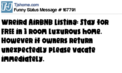 X says Wreird AirBNB Listing: Stay for FREE in 3 room luxurous home. However if owners return unexpectedly please vacate immediately.