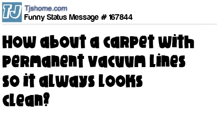 X says How about a carpet with permanent vacuum lines so it always looks clean?