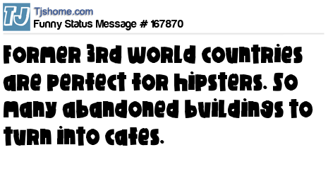 X says Former 3rd world countries are perfect for hipsters. So many abandoned buildings to turn into cafes.