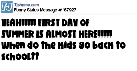 X says YEAH!!!!! FIRST DAY OF SUMMER IS ALMOST HERE!!!!! when do the kids go back to school??