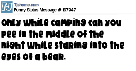 X says Only while camping can you pee in the middle of the night while staring into the eyes of a bear.