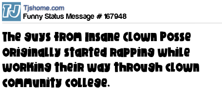 - # 182408 It's disturbing to think that somewhere, someone might be listening to a Sane Clown Posse