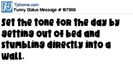 X says Set the tone for the day by getting out of bed and stumbling directly into a wall.