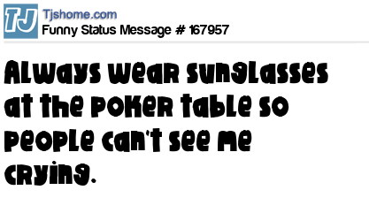 X says Always wear sunglasses at the poker table so people can't see me crying.