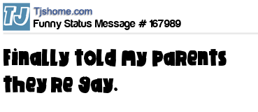 - # 168747 Finally told my parents their neighbor of 20 years has always been an openly gay man.