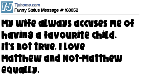 X says My wife always accuses me of having a favourite child. It's not true, I love Matthew and Not-Matthew equally.