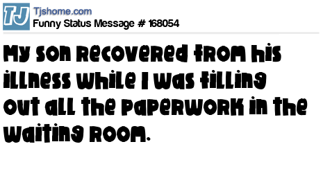 X says My son recovered from his illness while I was filling out all the paperwork in the waiting room.