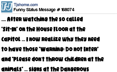 X .... After watching the so called "Sit-In" on the House Floor at the Capitol ... I now realize why they need to have those "Warning: Do not Enter" and "Please don't throw children at the animals" ... signs at the Dangerous Animal exhibits at the zoo.