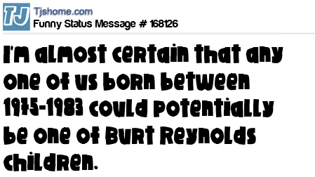 X says I'm almost certain that any one of us born between 1975-1983 could potentially be one of Burt Reynolds children.