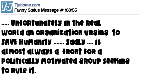X ..... Unfortunately in the real world an organization urging to SAVE Humanity ....... Sadly .... is almost always a front for a politically motivated group seeking to rule it.