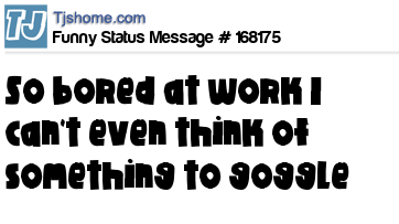 X says So bored at work I can't even think of something to goggle