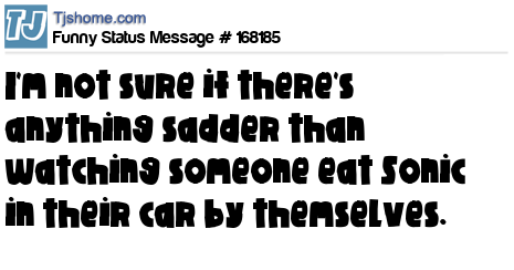X says I'm not sure if there's anything sadder than watching someone eat Sonic in their car by themselves.