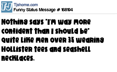 X says Nothing says "I'm way more confident than I should be" quite like men over 35 wearing Hollister tees and seashell necklaces.