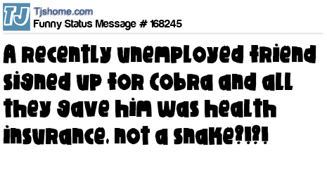 X says A recently unemployed friend signed up for Cobra and all they gave him was health insurance, not a snake?!?!