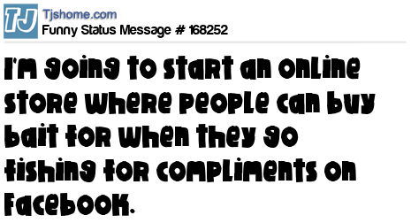 X says I'm going to start an online store where people can buy bait for when they go fishing for compliments on Facebook.