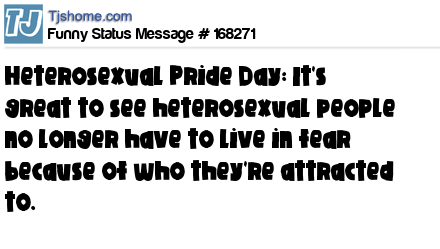 - # 147342 So when is the next heterosexual parade so we can brag about how heterosexual we are? Asking for a friend....