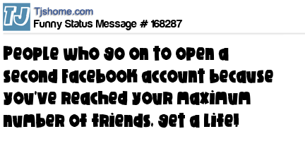 X says People who go on to open a second Facebook account because you've reached your maximum number of friends, get a life!
