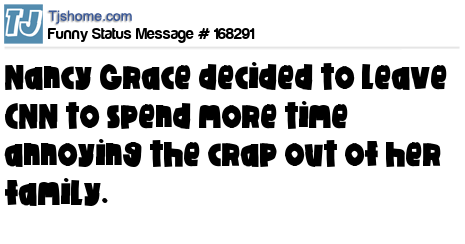 X says Nancy Grace decided to leave CNN to spend more time annoying the crap out of her family.