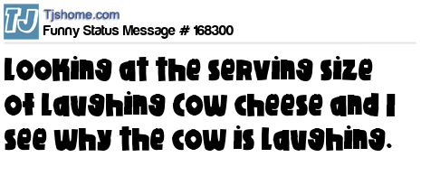 X says Looking at the serving size of Laughing Cow cheese and I see why the cow is laughing.